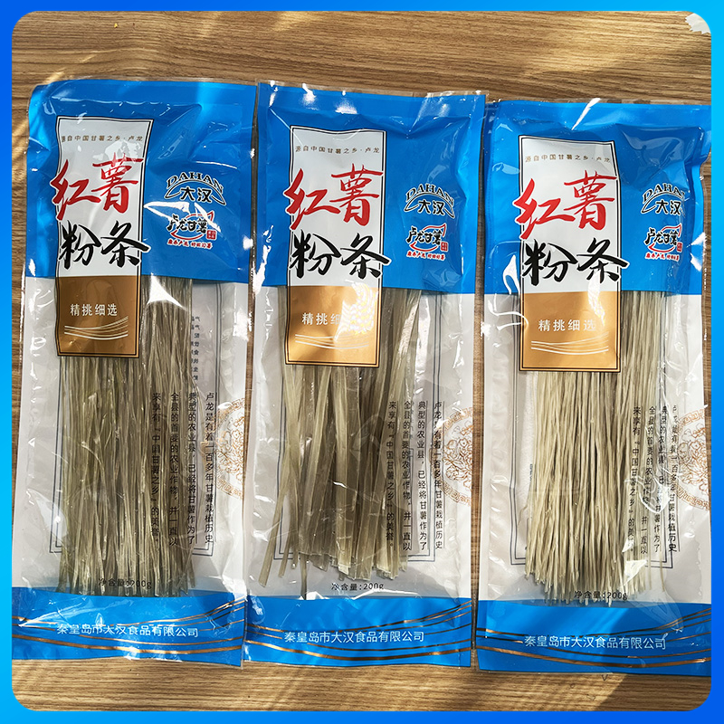 秦皇岛市大汉食品有限公司坐落与卢龙县卢龙镇赵庄子村,总占地面积46亩,固定资产1300万元,2010年12月成立,主要生产以卢龙甘薯为原料的精致净化淀粉、薯脯、粉丝、粉条等系列产品。设计年产能力4500吨,主要品牌有“一奇”、“老疙瘩”、“劲大”、“兴军一奇”等,主要销往京津、石家庄等36个大中城市,共设置代理商67家。其中“一奇”产品在北京市场上销量占同类产品的70%左右,2015年实现产值2030万元。