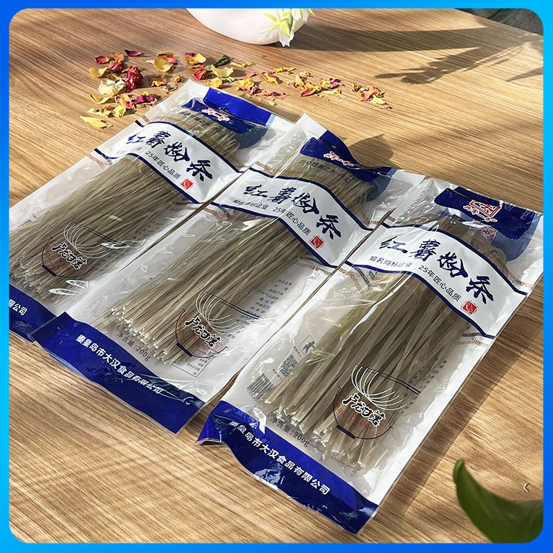 秦皇岛市大汉食品有限公司坐落与卢龙县卢龙镇赵庄子村,总占地面积46亩,固定资产1300万元,2010年12月成立,主要生产以卢龙甘薯为原料的精致净化淀粉、薯脯、粉丝、粉条等系列产品。设计年产能力4500吨,主要品牌有“一奇”、“老疙瘩”、“劲大”、“兴军一奇”等,主要销往京津、石家庄等36个大中城市,共设置代理商67家。其中“一奇”产品在北京市场上销量占同类产品的70%左右,2015年实现产值2030万元。